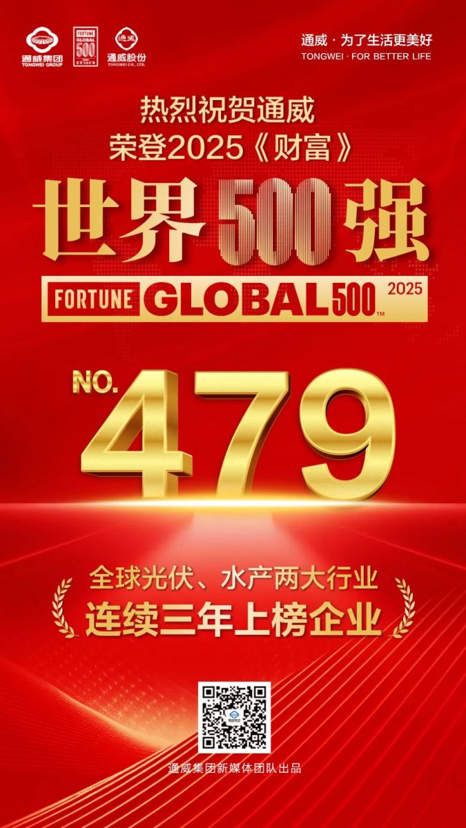 【大公网四川频道讯 童伟】7月29日,2025年《财富》世界500强排行榜正式发布。继2023年、2024年连续两年登榜后,今年通威集团再次荣登《财富》世界500强榜单,位列第479位,成为全球光伏和水产两大行业连续三年上榜企业。