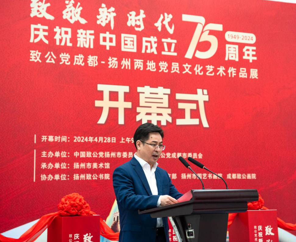 【大公网四川频道讯 陈铭】4月28日,由中国致公党成都市委员会、中国致公党扬州市委员会联合主办,致公党成都市成华区支部、成都致公画院、扬州致公书院、扬州市国艺书画院协办,致公党成都和扬州两地党员文化艺术作品展,在江苏扬州市美术馆开幕。展览将持续至5月10日,免费向公众开放。